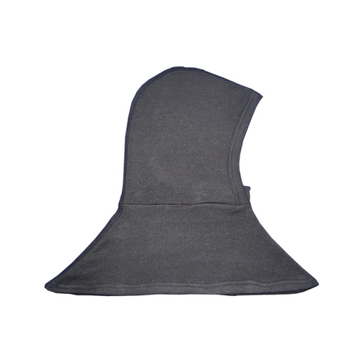 Doppellagige, elastische Kopfschutzhaube mit Brust- und Schulterlatz sowie schmalem, lose verstürzten Mundschutz und rolliertem Gesichtsausschnitt. Mit Flachstricknähten. Geeignet zum Tragen mit und ohne Atemschutz. Der Übergang vom Hals- in den Brustbereich ist etwas länger geschnitten, so dass der Latz der Flammschutzhaube optimal unter der Überjacke bleibt. Kein Herausrutschen!