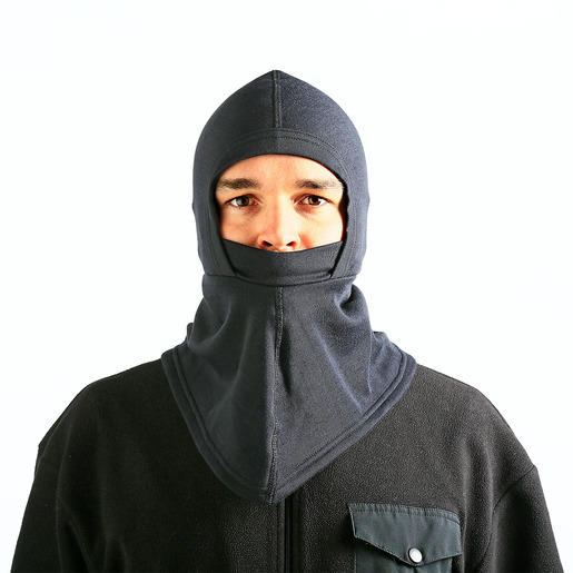 Kopfschutzhaube mit Brust- und Schulterlatz sowie schmalem, lose verstürzten Mundschutz und rolliertem Gesichtsausschnitt. Elastisch, doppellagig, mit abklappbarem Mundschutz. Geeignet zum Tragen mit und ohne Atemschutz. Sauber gesäumter Gesichtsausschnitt. Mit verlängertem Halsschutz. Der Übergang vom Hals- in den Brustbereich ist etwas länger geschnitten, so dass der Latz der Flammschutzhaube optimal unter der Überjacke bleibt.